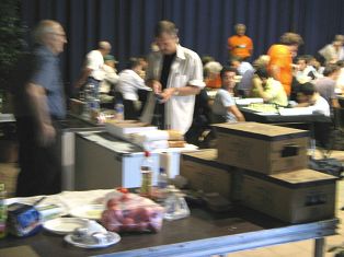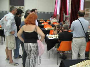 En la tercera ronda se ha dado a conocer el comité de representantes de los jugadores. ¡Bah, siempre los mismos!, oí comentar a un jugador, no sé, yo vote a un titulado pero también a Cantan y a Soria... (Hoy solo dos pollos según informa Sergi Castellano. Uno con la camiseta y el móvil de Mayer y otro una sordera sospechosa ante el aviso de jaque de su contrincante Francisco Revert. ¿Se han de avisar ahora?, ¿es molestar al rival?, ¿Hay que cantarlos bajito?. Que alguien me lo aclare por favor. Hoy he conocido la sala A, La catedral me dicen que la llaman. Que lustre dan las banderas. Que seriedad. No bottles on the table. El árbitro principal Enio Bello, (por cierto otro fumanchú y sigue habiendo otros muchos jugadores), ejerce como comandante en jefe del torneo. Veo a sus auxiliares un poco tensos, como si se estuvieran examinando. Tranqui que los jugadores no nos comemos a nadie, bueno, alguno sí, pero poco. En el aspecto deportivo: Victoria de Pifarré muy labrada en el tablero 1. En el momento del desenlace final el jugador lleidatá tenía Dama, pareja de alfiles, caballo y 4 peones, por dos torres, alfil, caballo y 6 peones, uno de ellos pasado en sexta, de su oponente la joven Sandra Escobar. Aunque la posición parecía de buenas expectativas para la del Congrés, se dejó un mate lamentable, que hasta le supo mal al número 2 del ranking. En el tablero 2, López Abaurrea, se quejaba lastimosamente de la ventaja que le llevó toda la partida el rapaz de turno Carlos Vargas (Fide 1962, Feda 1937, Fce 2095). Es legal López, el no se esconde, otra cosa es que sea ético, pero eso es tan personal... Jugadores como Jordi Puig, Enric Balagué, Joaquim Sans y muchos otros como el propio Ivan Marina vencedor del grupo B en 2005, han decidido sufrir en el grupo A. En el tablero 3 el "francés": Mateo García Ponce, (es francés supongo por la bandera de su rótulo) pudo con el vasco Aizpurua, esto no es Moldavia Iñaki. Tablas en la partida de los Muratet, por supuesto. Victorias también de Zamarreño sobre el último (de momento) de la saga Ayza: Alex. y de Gómez Figueroa sobre Domingo. Perdió Aunes ("Que malo que soy", según sus propias palabras) ante Xavier Caparrós. Un poco de ruido si que hay en el bar, sobre todo a la hora de la merienda. Los bocatas "Carpanta" quizá mejor definición que "Otilio", según me han apuntado hoy, están buenos. Si ofreces calidad, repiten me decía el "encargao" y además hay quintos efectivamente, El Jb y el winston eran suministro para uno de los "camatas". No será necesario el control de alcoholemia. Otras visitas ilustres, además de Julio Granda, han sido la de Carlos Ferrón, uno de los atracadores mas prestigiosos del ajedrez catalán moderno y la de la periodista-escritora Ana Manrique que está rodando un DVD con entrevistas, sobre el torneo.
