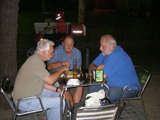 En la terraza del bar también se analiza. Jordi Jane Besora, tras ganar su primera partida en sants 2006.