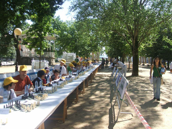 La imagen impresionaba: una gran hilera de tableros cubría la Alameda de Pontevedra. 152 ajedrecistas batiéndose contra el Maestro Daniel, que caminaba sin descanso tablero tras tablero. Aproximadamente hizo a lo largo de la tarde unos 12 kilómetros y unas 5000 jugadas.