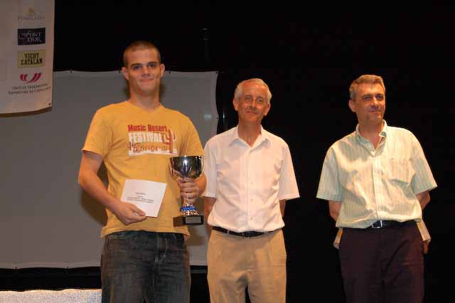 Per trams d’elo la victòria va ser per: Juan Pomes Marcet del Terrassa .......................... 1r. Classificat Tram Elo 2300-2399 Ruben Martin Grillo del Catalunya ...................... 1r. Classificat Tram Elo 2150-2299 David Vigo Allepuz de l’E.E.B. ............................ 1r. Classificat Tram Elo 2000-2149 Oriol Francesc Cuscullola del Lleida .................... 1r. Classificat Tram Elo 1850-1999 Jordi Subirats Ferrando del Masdenverge ............. 1r. Classificat Tram Elo 1700-1849 Podem destacar com anècdota, que no es va poder entregar els premis del tram Elo 2300-2399 degut a que només hi participaven tres jugadors i aquests ja havien obtingut premis superiors en la classificació general. El premi al 1r equip classificat en aquesta edició se’l va endur el Reus Deportiu, seguit del Vallfogona de Balaguer, el primer classificat veterà va ser el jugador del Torredembarra Jordi Pla Poblador, mentre que la guanyadora del premi a la millor classificada femenina se’l va emporta la jugadora del Vallfogona Inma Montoliu Daroca i el premi a millor jugador local va ser per a Jose Antonio Delgado Montañes. En quan a l’apartat de trofeus per a jugadors en edat escolar els guanyadors va ser: 1r. Classificat Sub-16........................... Cristhian Cruz del Tres Peons 1r. Classificat Sub-14........................... Oriol Francesc Cuscullola del Lleida 1r. Classificat Sub-12........................... David Aviol Olivera de Zaragossa 1r. Classificat Sub-10...... .................... Llàtzer Bru Rullo Ampolla En un apartat menys esportiu però més cultural, l’organització va organitzar durant el matí una visita guiada per la nostra població, per a tots els acompanyants dels jugadors participants.