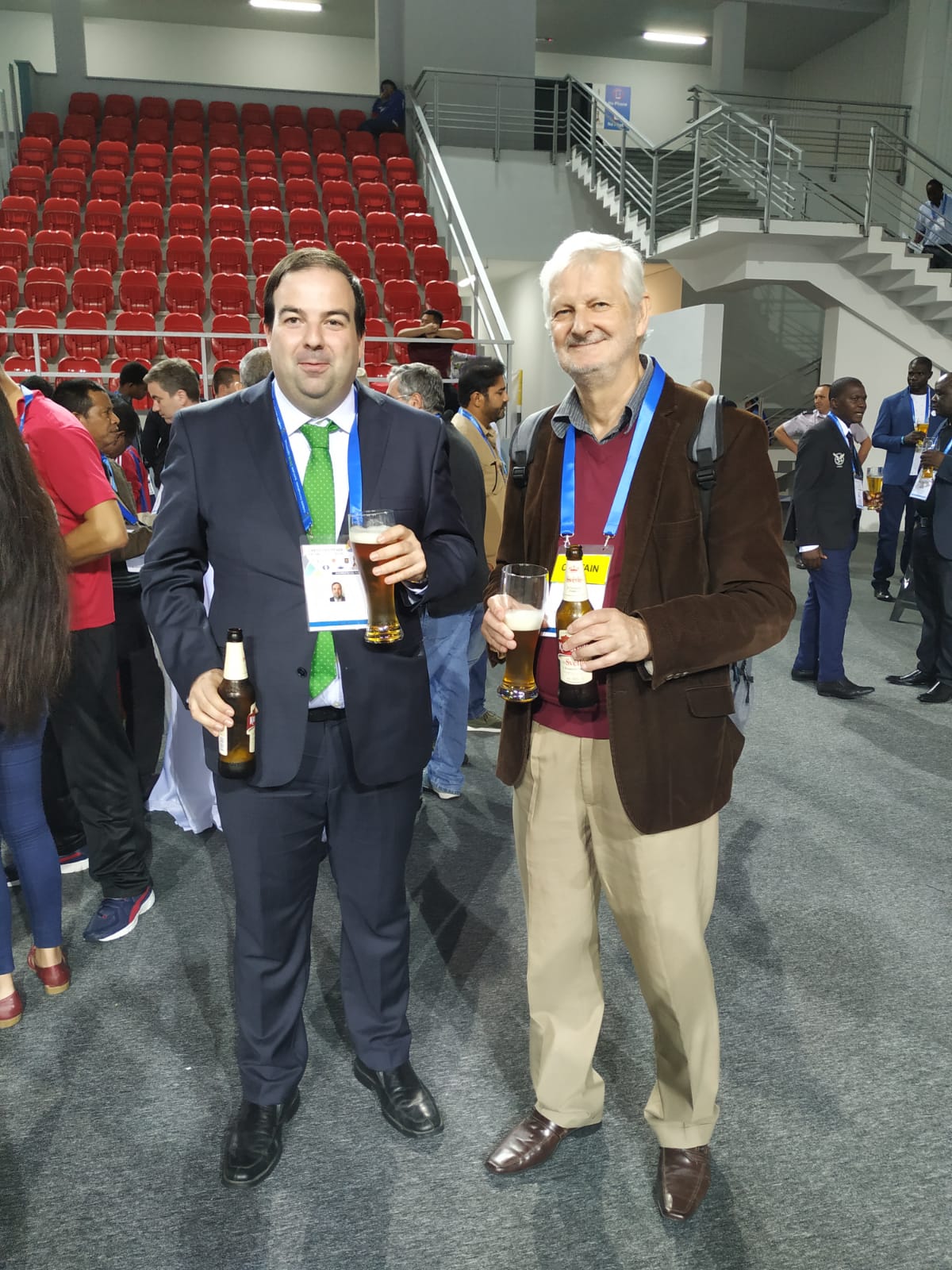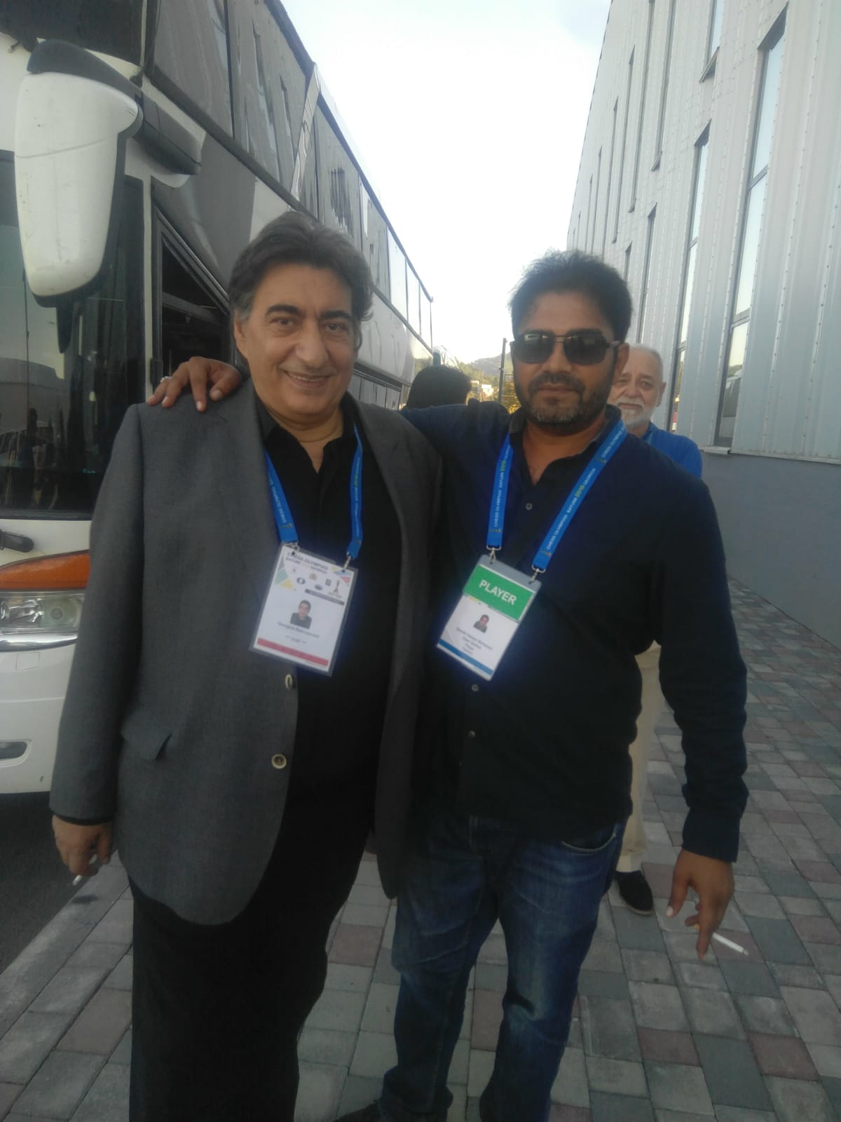 El candidato Makropoulos con el único jugador de Pakistán que ha llegado a la Olimpiada