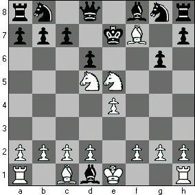 1.e4 e5 2.Ac4 Cf6 3.d3 c6 4.Ag5 h6 5.Axf6 Dxf6 6.Cc3 b5 7.Ab3 a5 8.a3 Ac5 9.Cf3 d6 10.Dd2 Ae6 11.Axe6 fxe6 12.0–0 g5 13.h3 Cd7 14.Ch2 h5 15.g3 Re7 16.Rg2 d5 17.f3 Cf8 18.Ce2 Cg6 19.c3 Tag8 20.d4 Ab6 21.dxe5 Dxe5 22.Cd4 Rd7 23.Tae1 h4 24.Df2 Ac7 25.Ce2 hxg3 26.Dxg3 Dxg3+ 27.Cxg3 Cf4+ 28.Rh1 Txh3 29.Tg1 Txh2+ 30.Rxh2 Th8+ 31.Ch5 Txh5+ 32.Rg3 Ch3+ 33.Rg4 Th4# 0–1