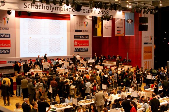 Ronda 3 España comenzó mal el encuentro al perder San Segundo su partida tras dejarse entrar en una red de mate. Pero los otros tres componentes no fallaron y el resto de puntos cayeron del lado hispano. Hoy hemos tenido suerte en el sorteo porque nos ha tocado el equipo anfitrión, Alemania, equipo duro, pero viendo lo que nos podía tocar, es de lo mas asequible. Italia paso por encima de Andorra con un contundente 4-0, y las sorpresas de la tarde corrieron a cargo de la Noruega de Carlsen que se impuso a la potente selección china, Holanda empato con Azerbaijan nº 4 del ranking, Francia e Israel se dejaron otro punto al no poder pasar del empate frente a Grecia y Lituania En el femenino cómoda victoria ante Albania, por 3'5 a medio, en una jornada marcada por el empate de las rusas con las indias. España hoy jugará con Turquía . Ayer comenzaron a aplicar la regla de que el que no está cuando el arbitro le da al gong pierde la partida, y los primeros ceros no se hicieron esperar. Atentos porque la regla del tiempo de espera, que se aplica en todos los torneos parece que sufrirá modificaciones en el congreso de la FIDE que comienza la semana que viene y esta nos afectará a todos. Ronda 4 España perdió su primer encuentro delante de los anfitriones. La primera partida en acabar fue la de vallejo que firmó tablas con negras en posición igualada. Illescas ha cogido clara ventaja y aunque ha sido el último en acabar se ha adjudicado el punto. Khamrakulov había conseguido igualar con negras pero dos avances de peones que pocos han entendido, le han dejado perdido. Bonito el remate de su rival, entrando en un final de peones, que aparentemente no le daba ventaja, pero que a falta de estudiar en profundidad, todas las variantes le daban la victoria. Shirov también ha perdido con blancas, Naiditsch le ha jugado la berlinesa y esta apertura parece que se le atraganta en esta olimpiada al primer tablero de España, a pesar de ser un especialista con blancas. Andorra ha ganado a Mónaco y está con la mitad de los puntos. Rusia y Alemania encabezan el cuadro masculino después de que por arriba se diesen varios empates entre los equipos que iban lideres. En el femenino España se ha deshecho de Turquia con comodidad y mañana les vuelve a tocar un hueso, la selección de Rumania mientras en el absoluto nos la s veremos con Bielorrusia. Ronda 5 España no ha pasado del empate ante Bielorrusia y gracias a que Vallejo se ha adjudicado el punto en la última partida en terminar. El match ha empezado fatal con la derrota de Illescas. Las tablas de San Segundo y de Khamrakulov solo le dejaban a Paco la posibilidad de ganar para sacar algo `positivo del encuentro y Vallejo no ha fallado. Las chicas han perdido por la mínima ante Rumania con Victoria de Calzetta y tablas de Marielys Delgado Andorra ha caído ante Suiza que ha dado descanso al abuelo Korchnoi. Rusia y Alemania han empatado y se mantienen en el grupo de cabeza donde también han entrado Armenia Azerbaijan, Inglaterra y Ucrania. En el femenino China domina en solitario En el último tablero se enfrentaban las dos selecciones que todavía no habían puntuado Islas Vírgenes y Seychelles. Las Islas Vírgenes han conseguido su primera victoria desde la Olimpiada de Bled. Impagable a pesar de su victoria, la derrota de su primer tablero, que cuando estaba inmortalizando a su rival ha enloquecido y ha acabado haciendo la que seguramente será la peor jugada de la olimpiada Tc1 no solo pierde una torre si no que pierde las dos de golpe. Ronda 6 España salvo el obstáculo de Filipinas con solvencia, merced a un 3-1 fraguado con las victorias de Vallejo y San Segundo y las tablas de Shirov e Illescas. Hoy nos toca Israel, un hueso, pero si se quiere aspirar a algo con algún hueso habremos de puntuar. El equipo femenino también ganó cómodamente a Estonia por el mismo resultado. En el absoluto dominio de Rusia y Armenia que hoy se verán las caras, los que mas olimpiadas han ganado se las verán con los actuales campeones olímpicos. En el femenino China sigue invicta. Andorra empato con Albania, lo que es un discreto resultado viendo la fuerza de los dos equipos y Cuba cayó por la mínima ante USA en el match con mas morbo político de la jornada. Alemania que está realizando un torneazo empato con Ucrania y es una de las pocas selecciones que siguen invictas, club donde está también una de las sorpresas de la olimpiada la selección griega. Ronda 7 Israel derrotó a España por 3-1. La temprana derrota de Khamrakulov ya ponía las cosas muy difíciles para conseguir sacar algo positivo del encuentro. Shirov primero y luego Vallejo firmaron tablas y la partida de Illescacs, no pintaba bien a pesar de que con un desequilibrio de piezas podía pasar de todo, pero al final la perdida de un peón dio ventaja al israelí, que la supo materializar. En el femenino Georgia pasó por encima de España por un contundente 4-0. En la general Armenia derrotó a Rusia y es líder en solitario de la Olimpiada, mientras en féminas las chinas continúan dominando la tabla. Andorra cayó ante Palestina y una de las sorpresas del día fue la victoria de Nueva Zelanda ante Bosnia. Ronda 8 España derrotó a Bangladesh gracias a las victorias de Shirov y Vallejo y en el sorteo de hoy nos ha tocado la lotería porque nos enfrentaremos a una selección muy asequible, los Emiratos Árabes Unidos, cosas de las peculiaridades del suizo olímpico, donde flotas para abajo y pillas al ultimo de la fila. Armenia le pegó un baño a Francia y sigue liderando la prueba, si hoy gana a Israel su candidatura a revalidar el título habrá que tomarla muy en serio. Las chicas ganaron a Kazahastan y hoy tendrán un difícil compromiso con Eslovaquia. Andorra empató con Barbados Hoy ha caído una espectacular nevada en Dresden que ha dejado la ciudad blanca. Ronda 9 En un día donde Dresden ha amanecido con varios centímetros de nieve en sus calles, España 