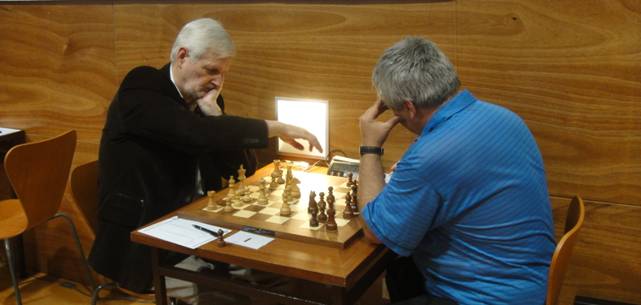 Al grup B, les taules del líder Ricardo Narbón enfront David Vigo i la victòria de Carles Moya davant Pedro Alarcón al segon taulell deixen ambdós jugadors empatats amb 4,5 al capdamunt de la classificació. Doncs la resta de jugadors que comptaven amb 3,5 punts abans d’aquesta ronda no han pogut sumar el punt sencer; taules a la partida Valencia - De la Plaza i derrota de Carles Diaz davant Pere Mas. Així doncs, Valencia, Vigo, Shatko, Campo, Mas, De la Plaza i Fabre se situen amb 4 punts a l’espera del que passi demà al matx entre els líders al primer taulell. Situació força semblant al grup C. Gabriel Beaskoa no ha pogut passar de les taules davant Francisco Molina en una partida que li semblava favorable en alguns moments. Comparteix ara liderat amb Francesc Mateo, l’únic d’entre els perseguidors capaç de sumar el punt sencer al superar Miguel Angel Razkin. Taules doncs a les partides Garcia – Gomez i Serentill i fins a nou jugadors es situen amb 4 punts. Van passant les rondes i les partides són cada cop més disputades, sobretot al grup A. Forces partides han superat avui les quatre hores de joc i alguna s’ha apropat a les deu. De moment té el rècord el matx Van Riemdsijk – Obon que ha finalitzat en taules després de 50 jugades de torre i alfil contra torre.