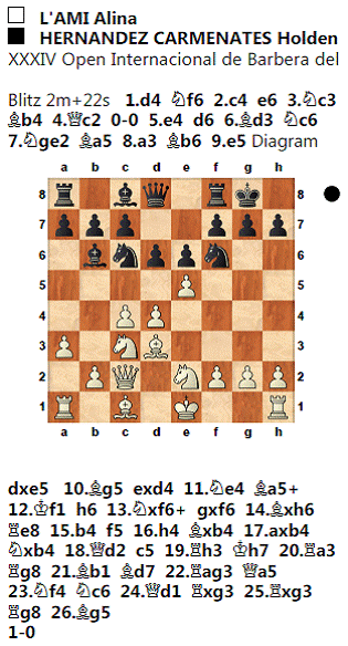 Acaba així la XXXIVena edició de l’Open Internacional de Barberà del Vallès. Des d’aquí felicitar no només els guanyadors, sinó tots els participants del torneig, tant per el bon nivell de joc com per l’esportivitat que s’ha demostrat durant tota la competició. Fer menció especial per acabar a les tres normes internacionals aconseguides en aquest torneig. Els FM’s cubans Arián González y Héctor Delgado s’enduen norma d’MI amb 6 i 6,5 punts respectivament, i la revelació del torneig, la WGM Alina L’Ami, es guanya la norma de GM amb 6,5 punts també però havent jugat amb fins a 8 titulats.
