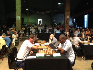 Mas información en www.cotxeres-casinet.org/open Ronda 1 Sants ha arrancado puntualmente con la cuenta atras del reloj instalado en la web del torneo. Casi 600 jugadores se han dado cita en las Cotxeres un año mas divididos en dos grupos. Los jugadores y jugadoras no han tardado en encontrar su tablero entre las seis salas de juego de las Cotxeres habilitadas para la competición. Y las sorpresas no se han hecho esperar. En el grupo A Andrea Norte que jugaba en zona de retransmisión invitada por la organización después de obtener medalla en los Campeonatos de España sub-18 ha derrotado al MI Arturo Vidarte. Iván Aguilar ha hecho tablas con el GM Holden Hernández. Frackowiak firmaba tablas con el GM Sergio Barrientos. La lista de titulados que no han podido sumar el primer punto es bastante mas larga. Pero esto no ha hecho mas que empezar, mañana se dará el toque de salida a las populares Fiestas del barrio de Sants con el pregón y a partir del domingo con la apertura de las calles engalanadas. Atentos a la partida que ha ganado el MC Richard Guerrero, seguro que es una de las candidatas al premio de belleza Guerrero Sanmarti,R - Raimbault,P Ronda 2 Con tantos jugadores es imposible que no haya sorpresas, pero los primeros del ranking ayer amarraron el segundo punto. David Vigo firmó sus segundas tablas con titulado tras hacerla el primer dia con el GM Txelu Fernández ayer no dejó ganar al MI Luis Rojas. Teodor Asensio se ha colocado en el grupo de 2 puntos tras vencer al MI suizo Vuillimier y el jugador valenciano Joaquin Bas también está en el grupo de lideres tras derrotar al MI Luc Bergez. Ayer pregón de las Fiestas y los jugadores tuvieron que soportar 5 minutos de redobles de tambor del inevitable pasacalles por la carretera de Sants. Muchas camisetas del open en la sala, este año el diseño es un problema de Marc Narciso en el que mueva quien mueva hace mate. Para hoy ya tenemos a dos GM en el primer tablero. Nisipeanu se enfrentará a Pogorelov. En el grupo B ha empezado la criba y solo la mitad de los 36 primeros del ranking mantienen su asiento en el Auditorio. Ronda 3 Tablas en el primer tablero entre Nisipeanu y Pogorelov, Perpinyà también freno con unas tablas al nº 5 el norteamericano Shankland. La armada catalana con Narciso, Alvar Alonso, José Manuel López y Josep Oms han arrancado bien y se mantienen en tribuna con 3 puntos. El campeón de Catalunya Miguel Muñoz cedió medio. Jordi Coll también está en el grupo de lideres tras derrotar a Jonathan Cruz. En el grupo B solo el nº 1 de los 10 primeros ha sumado los tres puntos. veteranos como Valarezzo y Colom se encuentran en el grupo de los 3 puntos. Ayer también tuvimos visitas ilustres como el presidente de la FEDA Javier Ochoa y el director del Open de Benasque Miguel Royo Hoy arranca el torneo de futbol con 8 equipos y mañana tendremos el tradicional torneo de pasapiezas en la calle Guadiana en sesión matinal.