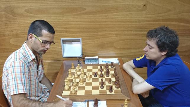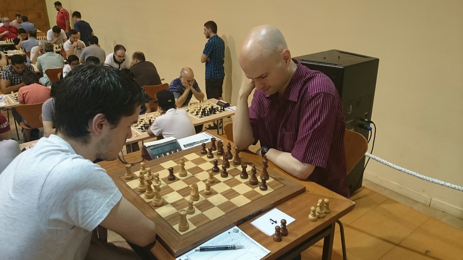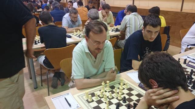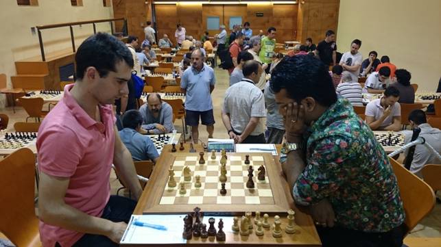 Pel que fa al grup B també començàvem la ronda amb 4 jugadors que havien fet "pleno" fins al moment i avui s'enfrontaven entre ells. Però la ronda ha acabat amb un únic jugador que hagi aconseguit les 4 victòries després de que Aleix López, el número 1 del rànquing, s'imposes, amb negres, a Harold Roig. I, per altre banda, el matx entre José Miguel Pérez i Manuel Pulido acabés en taules. Així doncs, Aleix es col·loca líder en solitari d'aquest grup B. Podeu veure tots els resultats, aparellament i classificacions al web: http://www.chess-results.com/tnr131858.aspx?lan=2&art=2&rd=4&turdet=YES&flag=30&wi=984Ronda 5 El Mestre Internacional Hindú, Roy Saptarshi, s'uneix als líders de la classificació. Al primer taulell avui teníem la partida entre els Grans Mestres Fernando Peralta i Levan Aroshidze, primer i segon del rànquing respectivament, que eren els dos únics que portaven 4 punts de 4 possibles. Els dos mestres han iniciat la partida amb una francesa quasi “al toque”, demostrant el domini d'aquesta obertura. Després del canvi de peó de c5 pel de d4, Fernando Peralta, que jugava amb negres, s'ha enrocat curt i les blanques han fet l'enroc llarg; moviments típics d'aquesta obertura. Poc a poc les negres han anat preparant un atac cap a l'enroc contrari amb els peons del flanc de dama, mentres, les blanques, feien ho propi pel flanc de rei avançant els peons d'f i de g. Finalment els dos jugadors han sacrificat peces fins a arribar a un final de dama contra les dues torres del negre, on han acabat fent taules per continuo. Per altre banda, al taulell 2, s'enfrontaven Roy Saptarshi i el seu compatriota, Shah Sagar, amb 3 punts i mig cada un, partida on seria Saptarshi qui s'apuntaria la victòria. Així doncs finalitzem la 5na ronda amb tres líder empatats a 4 punts i mig: Fernando Peralta, Levan Aroshidze i Roy Saptarshi.